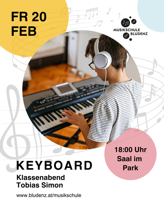 Klassenabend Tobias Simon Freitag, 20.Februar 18:00 Saal im Park Keyboard Veranstaltung in eigenem Kalender einfügen Download iCal Datei Google Outlook Yahoo teilenE-Mail Facebook Twitter drucken