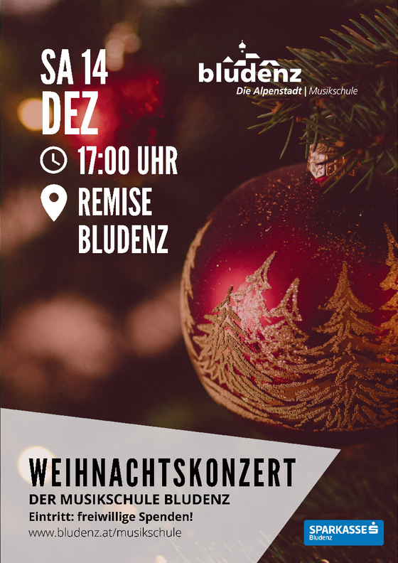 Weihnachtskonzert Samstag, 14.Dezember 17:00 Remise Bludenz Veranstaltung in eigenem Kalender einfügen Download iCal Datei Google Outlook Yahoo teilenE-Mail Facebook Twitter drucken
