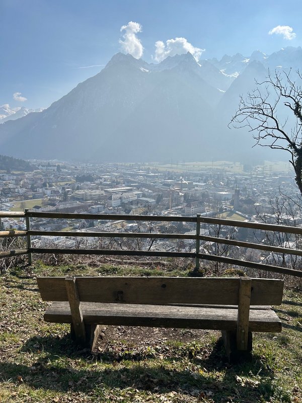 Aussichtsplätze mit atemberaubendem Panorama von Bludenz und den umliegenden Bergmassiven bis tief hinein ins Klostertal und die Arlbergregion. Der Wanderweg führt weiter über den „Sunna-Weg" Richtung Rungelin und Außerbraz. Bei einer Weggabelung dem Wegweiser Richtung "Halde" folgen und in den Stadtteil Halde absteigen. Bei der Einmündung in die Straße "Haldenweg" rechts halten und am Freizeitbad Val Blu vorbei Richtung