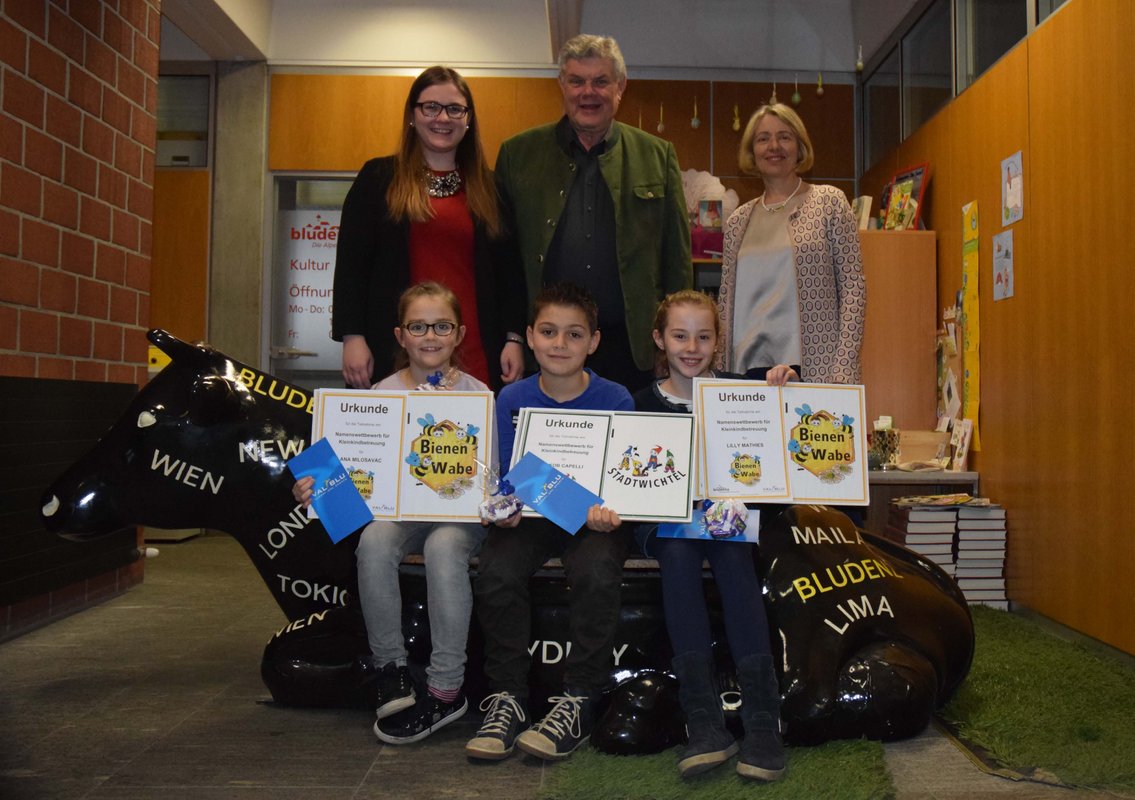 Im Rahmen einer kleinen Preisverleihung wurde den drei Siegern im Rathaus Bludenz von Bürgermeister Mandi Katzenmayer, Bildungsstadträtin Karin Fritz und Bildungsabteilungsmitarbeiterin Sandra Milosavac ihr Gewinn überreicht. Für ihre kreativen Ideen wurden Ana Milosavac, Lilly Mathies und Jakob Capelli mit Gutscheinen für das VAL BLU belohnt.