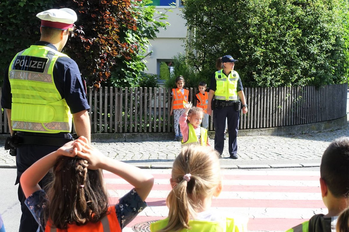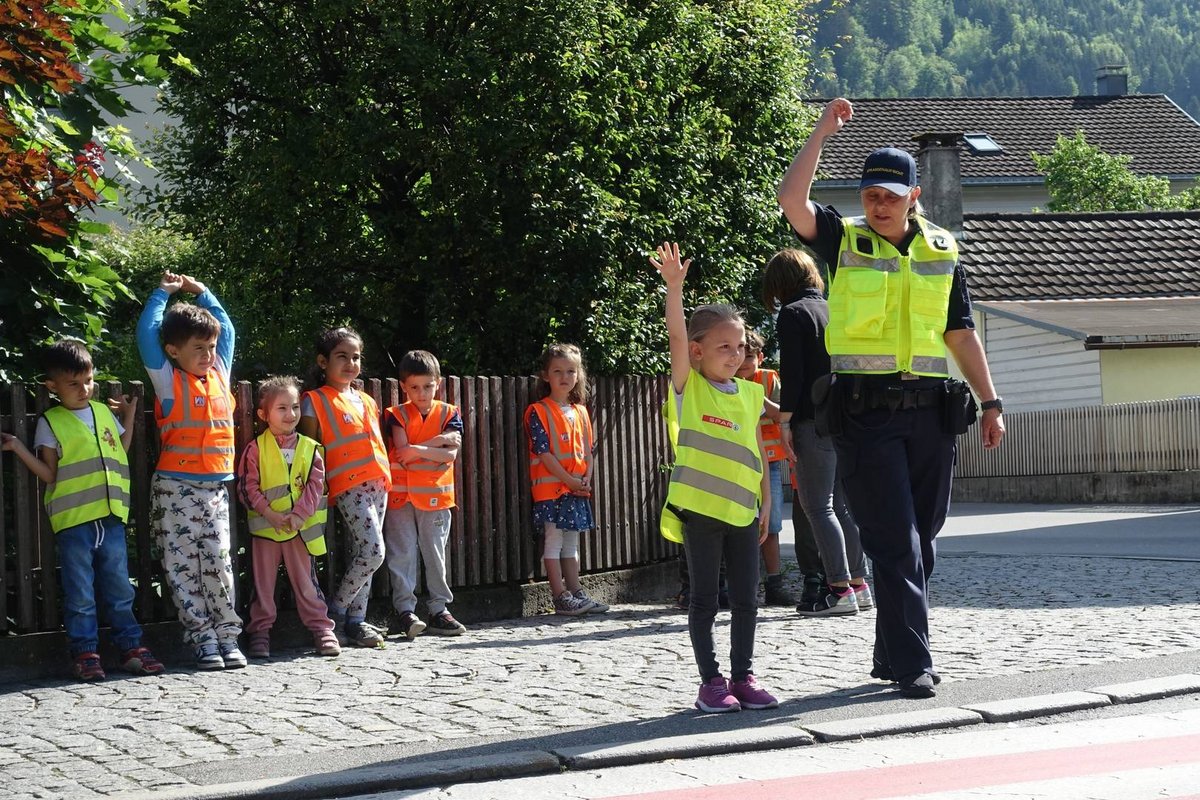 Regeln schaffen Ordnung. Manche dieser Regeln werden bei der Aktion eingehend mit den Kindern besprochen. So wird den Kindern deutlich gemacht, wie wichtig es ist sich sichtbar zu machen. Entweder durch das Anziehen von Leuchtwesten oder ein deutliches Heben der Hand beim Überqueren eines Schutzweges. Weiters wird mit den Kindern erarbeitet, warum man sich im Auto oder Kinderanhänger anschnallen muss und betont, dass sie auch die Großen Verkehrsteilnehmer*innen gerne an die Gurtpflicht erinnern dürfen. Am Ende der spannenden Stunde dürfen die Kinder Fragen stellen, das Polizeiauto besichtigen und Blaulicht und Folgetonhorn hautnah erleben. So erfahren die Kinder einen außergewöhnlichen Kindergartentag und nehmen mit, wie sie sich sicher verhalten und sich nicht unnötig in Gefahr bringen. Doch zur Erinnerung sei gesagt, dass Kinder ihre Umwelt unmissverständlich widerspiegeln. Sie machen nach, was sie in der Welt der Erwachsene beobachten. Somit legen die Erwachsenen mit ihrer Vorbildwirkung den Grundstein in der Verkehrserziehung.