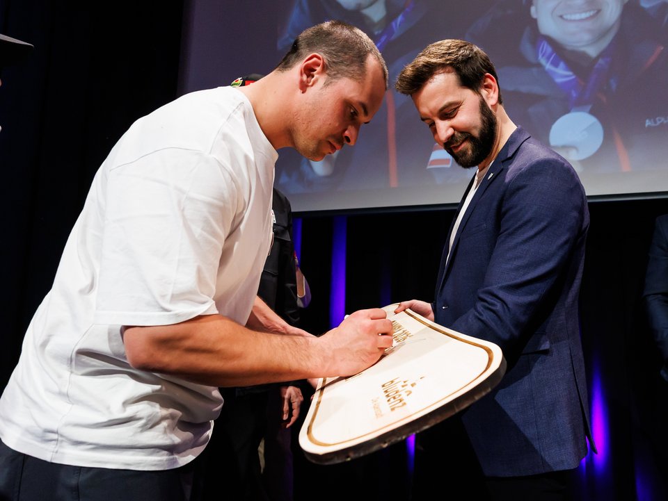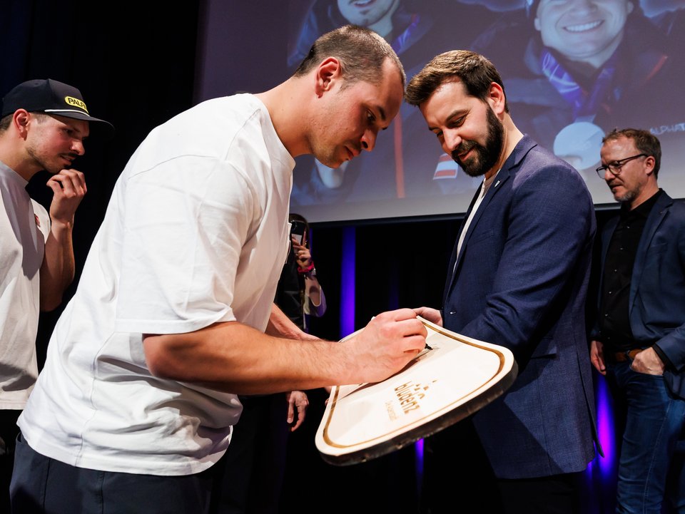 Als besondere Anerkennung erhielten Jonas Müller und Thomas Steu – beide passionierte Golfspieler – einen personalisierten Golfbag des Bludenzer Unternehmens IQ-Sports. Alessandro Hämmerle, der mit Rückenproblemen geplagt ist, darf sich künftig über erholsame Nächte in einem eigens für ihn angefertigten Zirbenbett des Bludenzer Unternehmens „Die Koje“ freuen.