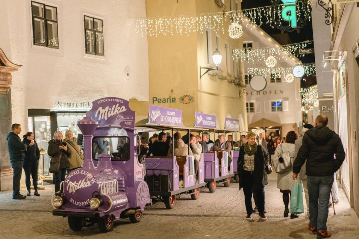 Die Geschäfte begrüßten die Besucher mit Charme und Persönlichkeit und verwöhnten vielseitig – ob mit Glühwein und Maroni, hausgemachten Keksen, Kuchen oder Suppen. Musikalisch umrahmt wurde der Einkaufsabend unter anderem mit einem Wohnzimmerkonzert bei den Eisprinzen, Openair-Klängen im Gastgarten beim Herrn Muk sowie mit Jazzklängen im Stadthotel Tschofen und Sologesang von „Souljacker“ Harry Weber bei Tschofen Tischkultur & Küche. In der Mühlgasse gab zudem der Chor Cantemus Livegesang zum Besten. Von Geschäft zu Geschäft gelangten die Besucher bequem mit dem Milka Zügle.