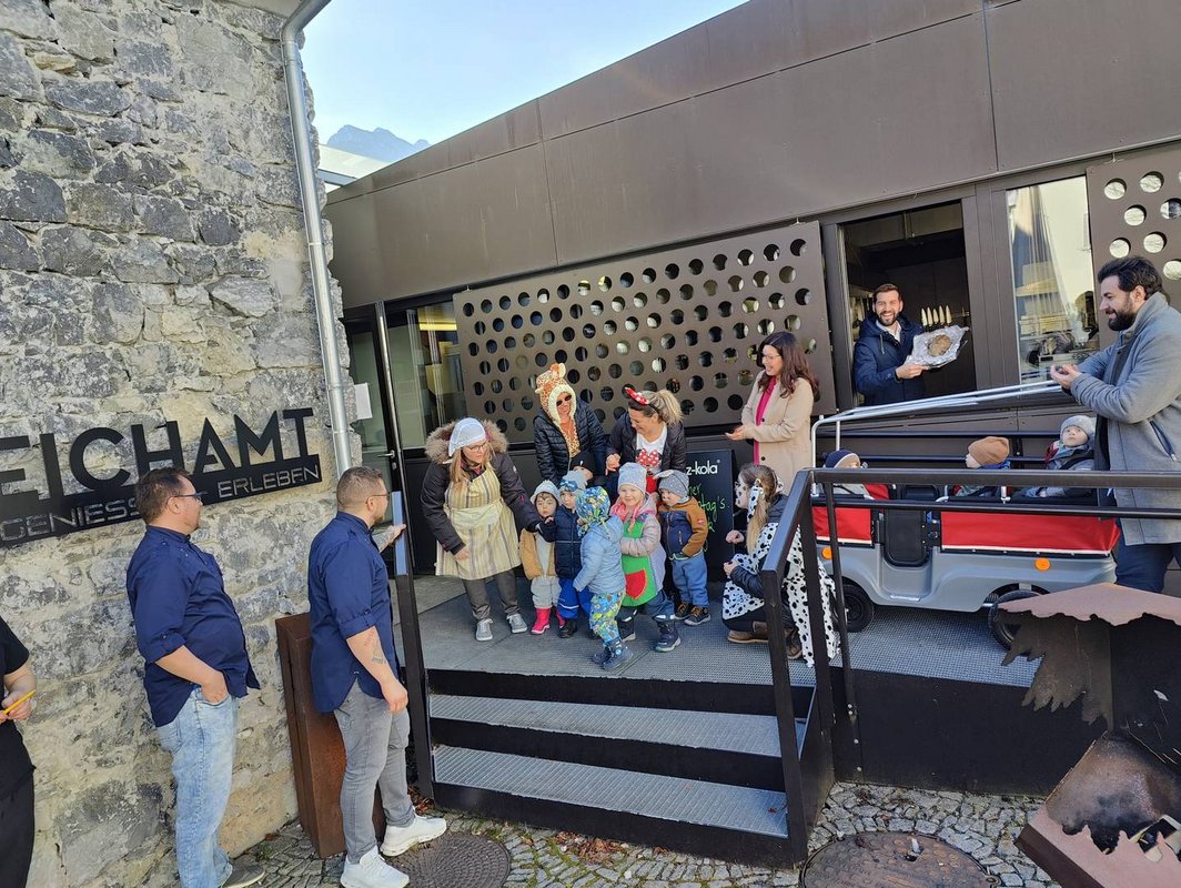 Wie jeder große Clou kann so etwas nur mit einer ausgeklügelten Taktik gelingen. So starteten die Kinder der Kleinkindbetreuung „Farbtüpfle“ gemeinsam mit Familienstadträtin Andrea Mallitsch ein gut vorbereitetes Ablenkungsmanöver, während sich das Stadtoberhaupt in der Küche zu schaffen machte. Während die Kinder sangen, hatte der Bürgermeister Zeit für die Tat. Mit dem köstlichen Braten unterm Arm und einem närrischen „Jöri, Jöri“ machte sich dann Bürgermeister Simon Tschann aus dem Staub, um kurze Zeit später mit viel Applaus zum gemeinsamen Bratenschmaus zurückzukehren. „Ein schöner Brauch, der bei und in Bludenz hochgehalten und gelebt wird. In der Alpenstadt ist das der Auftakt zum großen Faschingsfinale. Samstag und Sonntag ist Bludenz jedenfalls Narrenzeit angesagt“, freut sich der Bürgermeister schon jetzt auf seine „kurzzeitige“ Amtsenthebung.