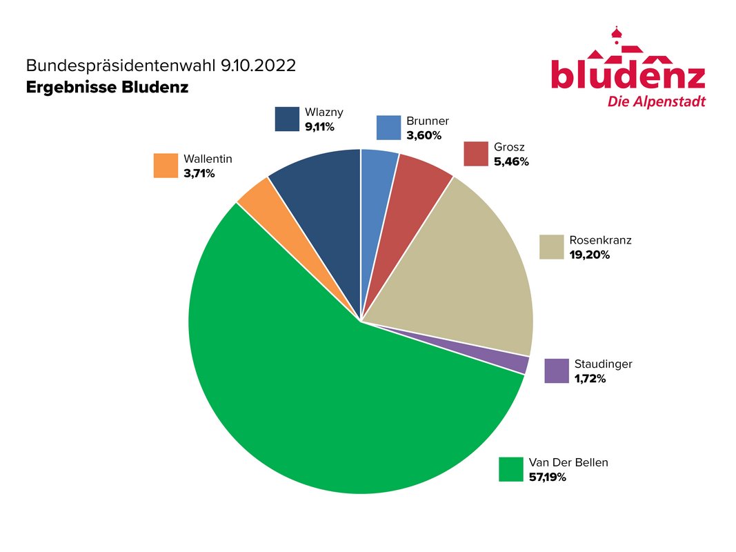 Der Wahlgang zur Bundespräsidentenwahl 2022 hat stattgefunden. In den Bludenzer Wahllokalen wurden die Stimmzettel ab 13 Uhr ausgezählt. Das Ergebnis - ohne Briefwahlkarten- steht nun fest. Klarer Sieger in Bludenz war Alexander Van der Bellen mit 57,19 % der Stimmern. Die Briefwahlkarten werden am Montag auf den Bezirkshauptmannschaften ausgezählt. Das amtliche Endergebnis dürfte am Montagabend vorliegen. Die Wahlbeteiligung in Bludenz lag bei 41,68 %.