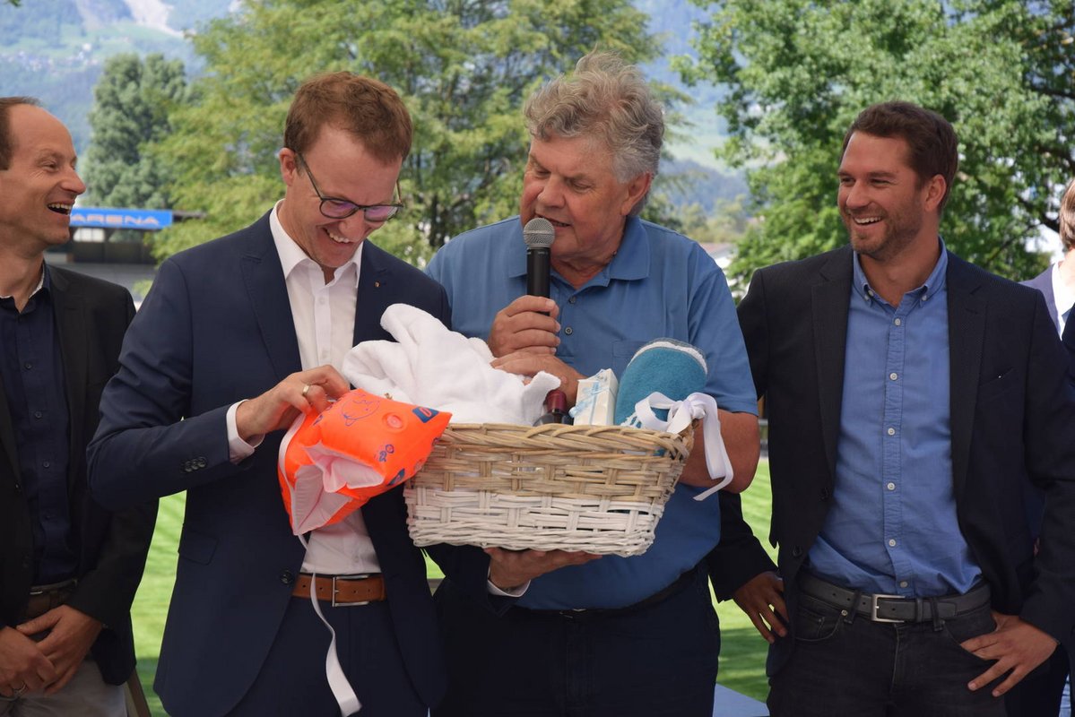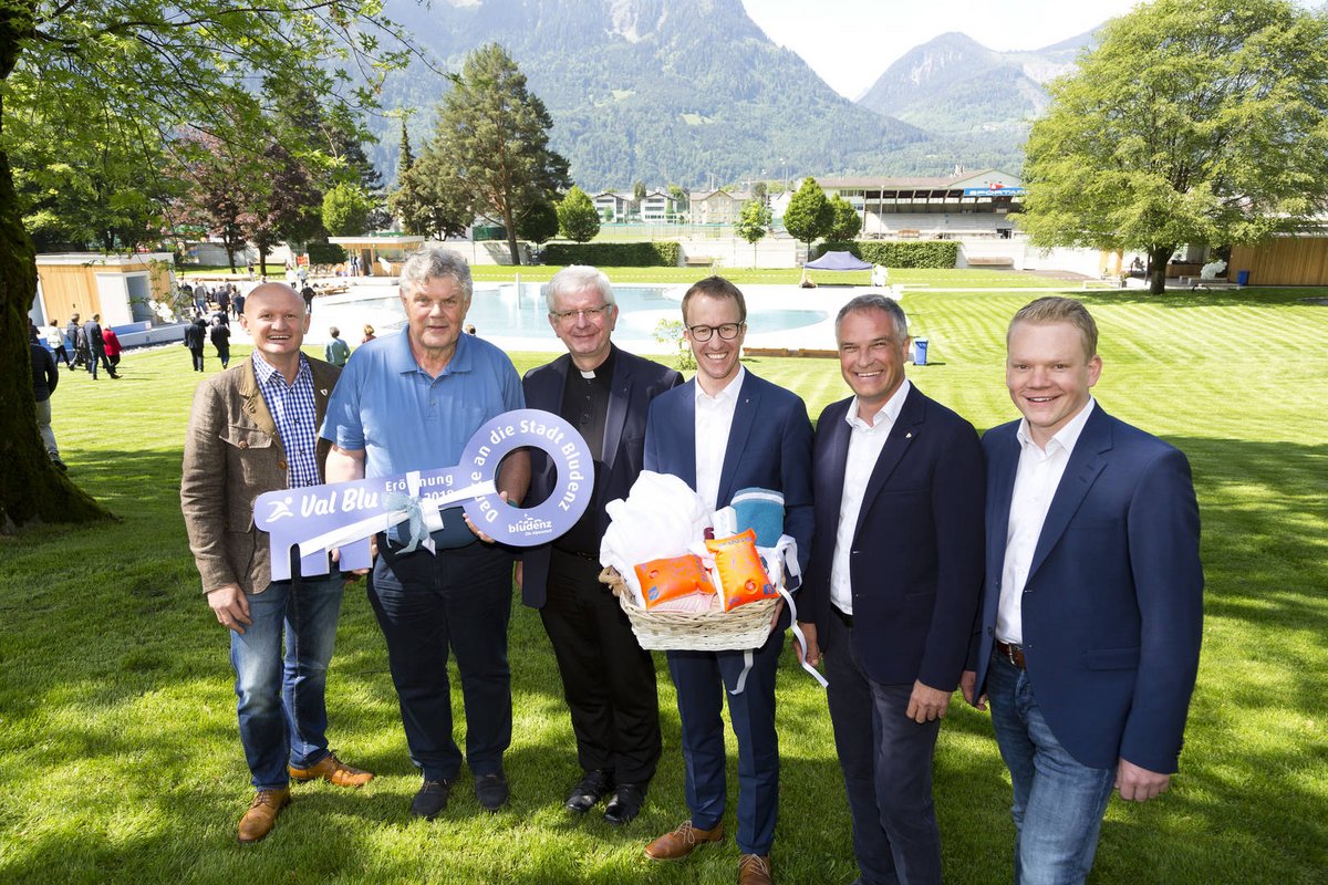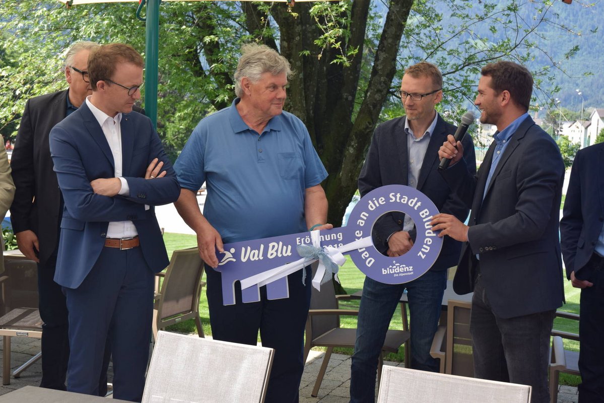 Zahlreiche Vertreter aus Politik und Wirtschaft nutzten den Tag der offenen Tür, um einen ersten Blick auf die neue Freibadanlage zu werfen. Neben den Stadträten Arthur Tagwerker, Karin Fritz, Gerhard Krump, Hansi Bandl und Joachim Weixlbaumer waren auch Bürgermeister Mandi Katzenmayer, Stadtamtsdirektor Erwin Koschitz und Vize-Bürgermeister Mario Leiter, Landtagsabgeordnter Christof Bitschi und der ehemalige Val Blu Geschäftsführer Klaus Allgäuer unter den Gästen. Auch die Bürgermeister der umliegenden Gemeinden, Peter Neier (Nüziders), Georg Bucher (Bürs), Lothar Ladner (Lorüns) und Eugen Hartmann (Innerbraz), ließen es sich nehmen, das neu gestaltete Freibad zu besichtigen. Zu den ersten BesucherInnen zählten auch Stadtmarketing-GF Wiebke Meyer, Christian Küng (pop up), Architekt Hagen Pohl, Physiotherapeut Alexander Fröis, Musikschuldirektor Thomas Greiner, Christoph Lorünser (Traube Braz) sowie Hanno Fuchs (WIGE Bludenz). Die Grußworte des Landes Vorarlberg überbrachte LR Christian Gantner. Vom erfolgreich realisierten Projekt zeigte sich dieser beeindruckt: "Von diesem beachtlichen Innovationsschritt profitiert die gesamte Region. Neben einem deutlichen Plus an Lebensqualität für die örtliche Bevölkerung bringt die Investition auch eine Aufwertung für die touristische Infrastruktur". Für den Landesrat ist deshalb auch klar: "Für Einheimische und Gäste ist es gleichermaßen ein großer Gewinn".