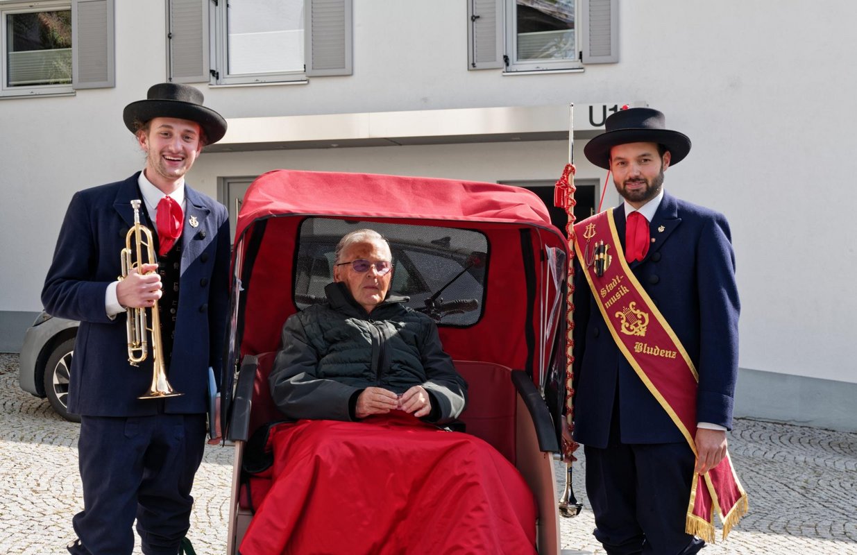 Als besondere Überraschung traf das Radel-Duo auf dem Weg auf die Stadtmusik Bludenz, die am Tag der Blasmusik ebenfalls auf Tour durch Bludenz unterwegs war und die Rikscha mit einem Ständchen freudig empfing.