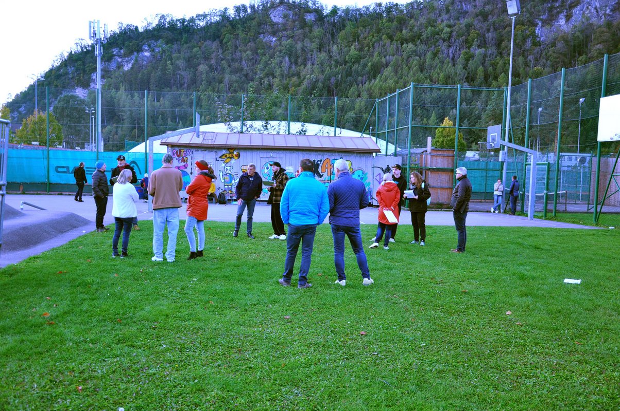 Bei einem Spaziergang zum Spark7-Platz beim Skaterpark wurden unter Anleitung von Martina Eisendle Wahrnehmungen gesammelt. Die Teilnehmer*innen wurden dazu angehalten, Eindrücke zu fokussieren und sich dabei bewusst auf Materialien, Geräusche und Emotionen zu konzentrieren. Bei der anschließenden Reflexion in der Villa K., an der auch Jugendliche teilnahmen, wurde das Erlebte beschrieben und in verschiedene Kategorien wie Nutzungskonflikte, Lärm- und Schallschutz, Mobilitäts- und Umweltaspekte unterteilt. Beim nächsten Treffen der Beteiligten, das am 6. November in der Polytechnischen Schule Bludenz stattfindet, steht das Artikulieren und Aushandeln der ersten Erkenntnisse auf dem Programm. „Für uns ist der offene Prozess sehr wichtig. Nicht von oben verordnet – sondern von der Basis mitgetragen. Das soll im neuen Nutzungskonzept im Mittelpunkt stehen“, ist Stadträtin Muther überzeugt.