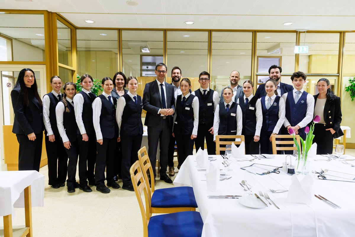 Den Auftakt bildete der Tourismusschulcampus Bludenz mit der Bundestourismusschule, dem Lehrhotel Rätia und der GASCHT. Beim gemeinsamen Mittagessen im Schülerrestaurant standen die Bedeutung qualifizierter Ausbildung und deren Rolle für den regionalen Arbeitsmarkt im Mittelpunkt. Anschließend informierte CEO der Getzner, Mutter & Cie Markus Comploj bei einem Rundgang durch die Getzner Textil AG über aktuelle Entwicklungen und Bauprojekte am Standort Bludenz.