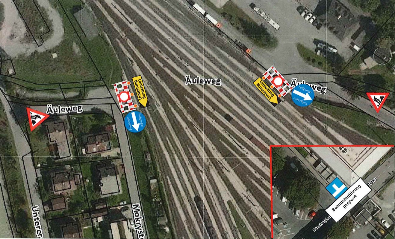 Bildunterschrift: Von 27. Oktober bis 7. Dezember kommt es im Bereich der Bahnunterführung im Äuleweg zu Verkehrsbehinderung.