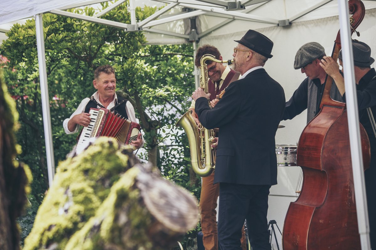 Für besonderes Festivalflair sorgten auch die verschiedenen Musiker*innen, wie etwas die Bauernfänger mit ihrem Swing-Bossa Nova, das Mona Ida Duo, das Montafoner Chörle Vrwäga und das Trio Musica de la luz, die mit ihrem Latin Gypsy Swing auch abseits der Bühne im Obstgarten noch ein Ständchen zum Besten gaben.