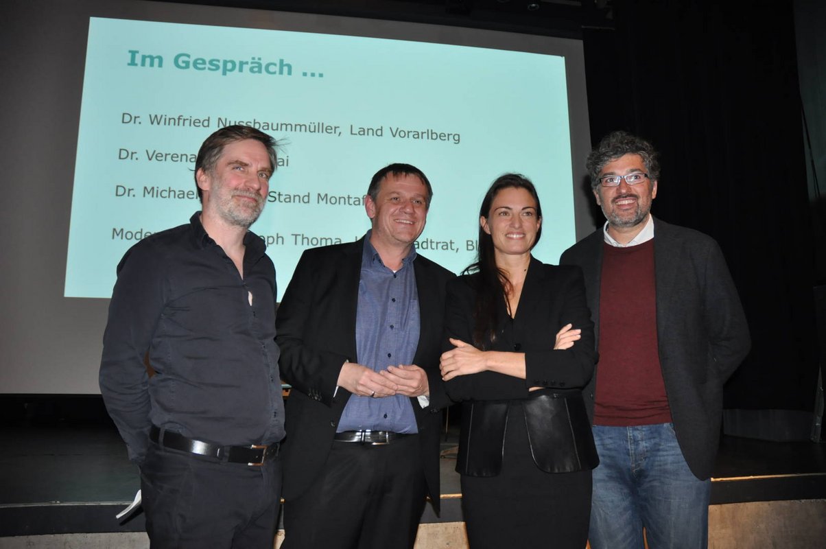 Gemeinsam mit Landesrat Dr. Christian Bernhard präsentierte Kulturstadtrat Christoph Thoma einen Zwischenbericht als Pre-Opening zum 20 Jahre-Remise-Festival in Bludenz. In einem offenen Gespräch mit Dr. Winfried Nussbaummüller (Vorstand Abteilung Kultur Land Vorarlberg), Dr. Verena Konrad (Direktorin vai Vorarlberger Architektur Institut) und Dr. Michael Kasper (Stand Montafon) konnten offene Fragen angesprochen und die Erkenntnisse aus der diesjährigen Kulturfabrik in offener Runde diskutiert werden. Das Angebot wurde von interessierten Kulturakteuren, Bürgerinnen und Bürgern angenommen.