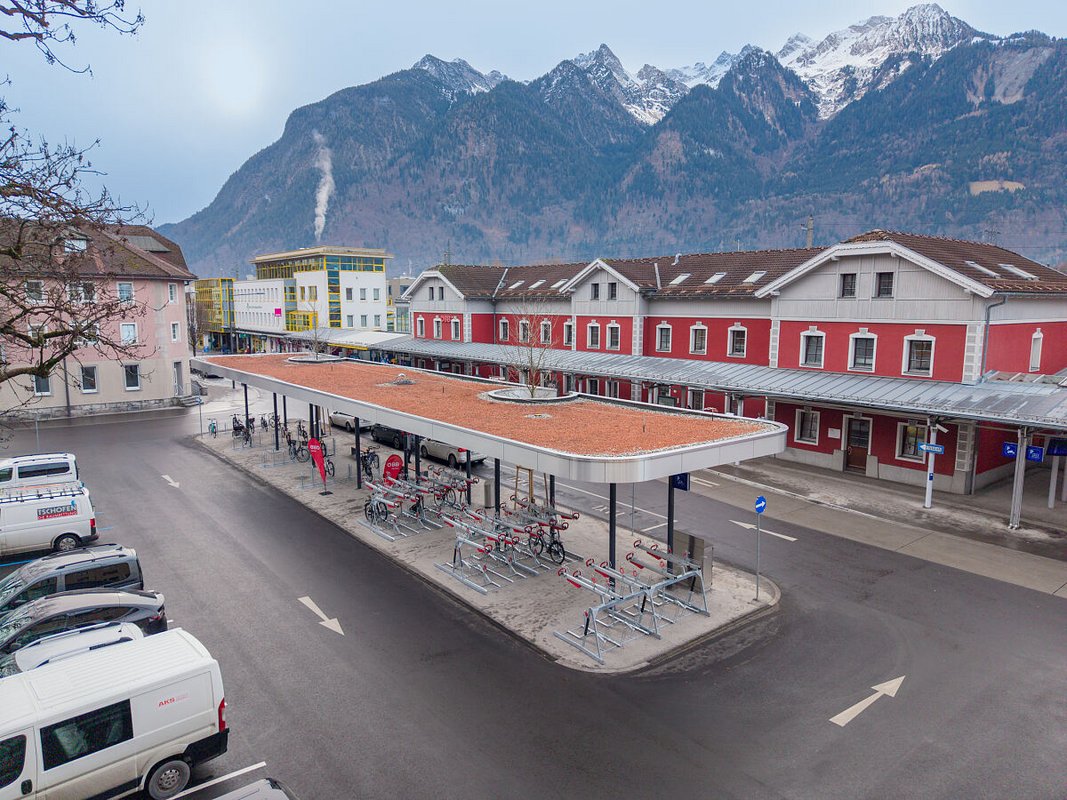In enger Zusammenarbeit mit dem Land Vorarlberg und der Stadt Bludenz haben die ÖBB ein zukunftsfähiges Gesamtkonzept umgesetzt, das den Bahnhof als Mobilitätsdrehscheibe stärkt und das Umsteigen zwischen Bahn, Bus, Rad und PKW komfortabler macht. Der stadtseitige Vorplatz und die Mokrystraße wurden als Begegnungszonen barrierefrei gestaltet, neue Wegeführungen, Baumpflanzungen und ein modernes Lichtkonzept sorgen für mehr Aufenthaltsqualität und Sicherheit für alle Verkehrsteilnehmer. Ein besonderes Augenmerk galt der Fahrradinfrastruktur: Insgesamt 282 überdachte Fahrradabstellplätze, darunter 44 hochwertige Fahrradboxen, sowie 21 überdachte Stellflächen für Mopeds und Motorräder stehen nun zur Verfügung. Eine Besonderheit im Mobilitätskonzept sind die überdachten Fahrradabstellplätze direkt in der modernisierten Unterführung des Bahnhofes. Außerdem wurden die Buskanten angepasst, um ein noch reibungsloseres Ein- und Aussteigen mit Fahrrad, Kinderwagen, Gehhilfen und ähnlichem zu ermöglichen.