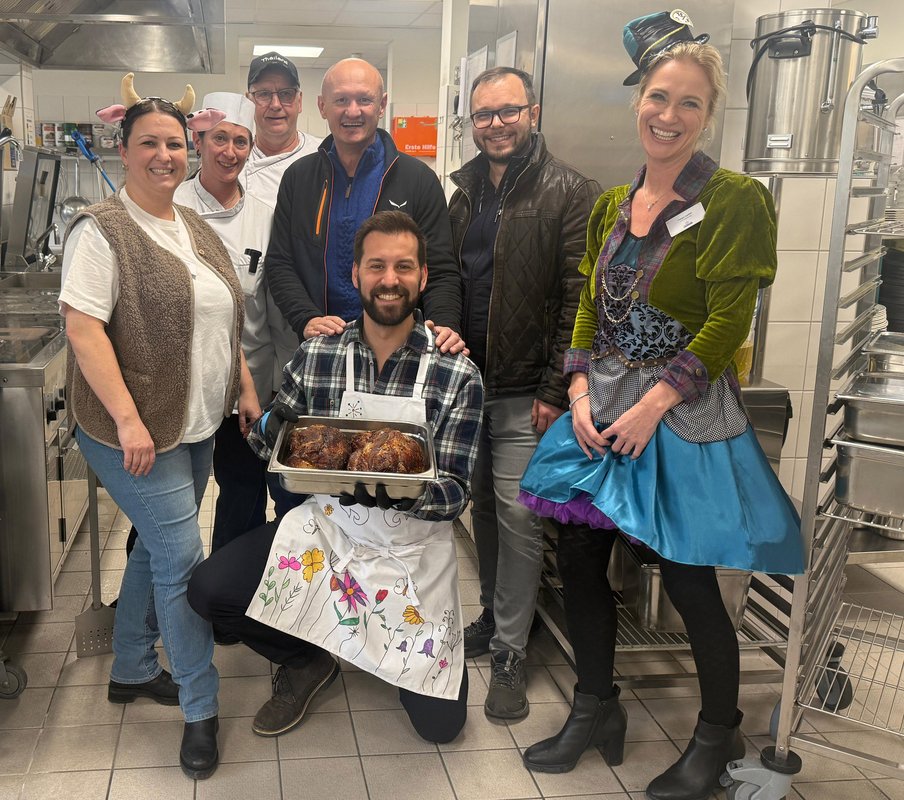 Dass ein Braten am „gumpiga Donnschtig“ nicht unbeaufsichtigt bleiben sollte, bewies Bürgermeister Simon Tschann eindrucksvoll: Am Donnerstag, 12. Februar, gegen 11.30 Uhr schlug das Stadtoberhaupt in der SeneCura zu und entwendete mit einem geschickten Ablenkungsmanöver den frisch zubereiteten Braten der Küche. Nach kurzer Flucht wurde er gefasst, gestand ohne Gegenwehr und teilte die Beute gerecht unter allen Anwesenden.