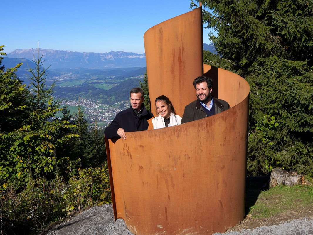 Florian Themeßl-Huber (Bürgermeister Nüziders) eröffnete gemeinsam mit Cenk Dogan (Kulturstadtrat Bludenz), Silvia Plangg (Alpenregion Bludenz Tourismus) und Bianca Rovetta (Kunsthistorikerin, Kuratorin) die Einweihung und begrüßten die Gäste offiziell. „Der Kunstweg Alpine Art verbindet Natur, Bewegung und Kunst. Mit den neuen Werken setzen wir – gerade in angespannten Zeiten – ein starkes Zeichen für kulturelle Vielfalt im öffentlichen Raum“, betonte Dogan in seiner Ansprache. Bürgermeister Themeßl-Huber hob hervor, dass die Kunstwerke das kulturelle Leben der Region nachhaltig bereichern und Besucher*innen neue Perspektiven eröffnen.