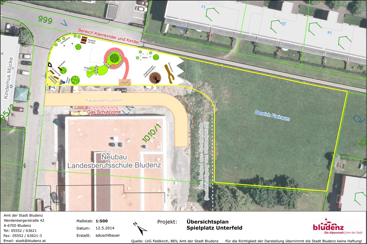 (19.5.2014) Die Stadt Bludenz wird im heurigen Sommer einen neuen öffentlichen Spielplatz im Bludenzer Unterfeld direkt neben der Landesberufsschule und der Bludenzer Tennishalle errichten.