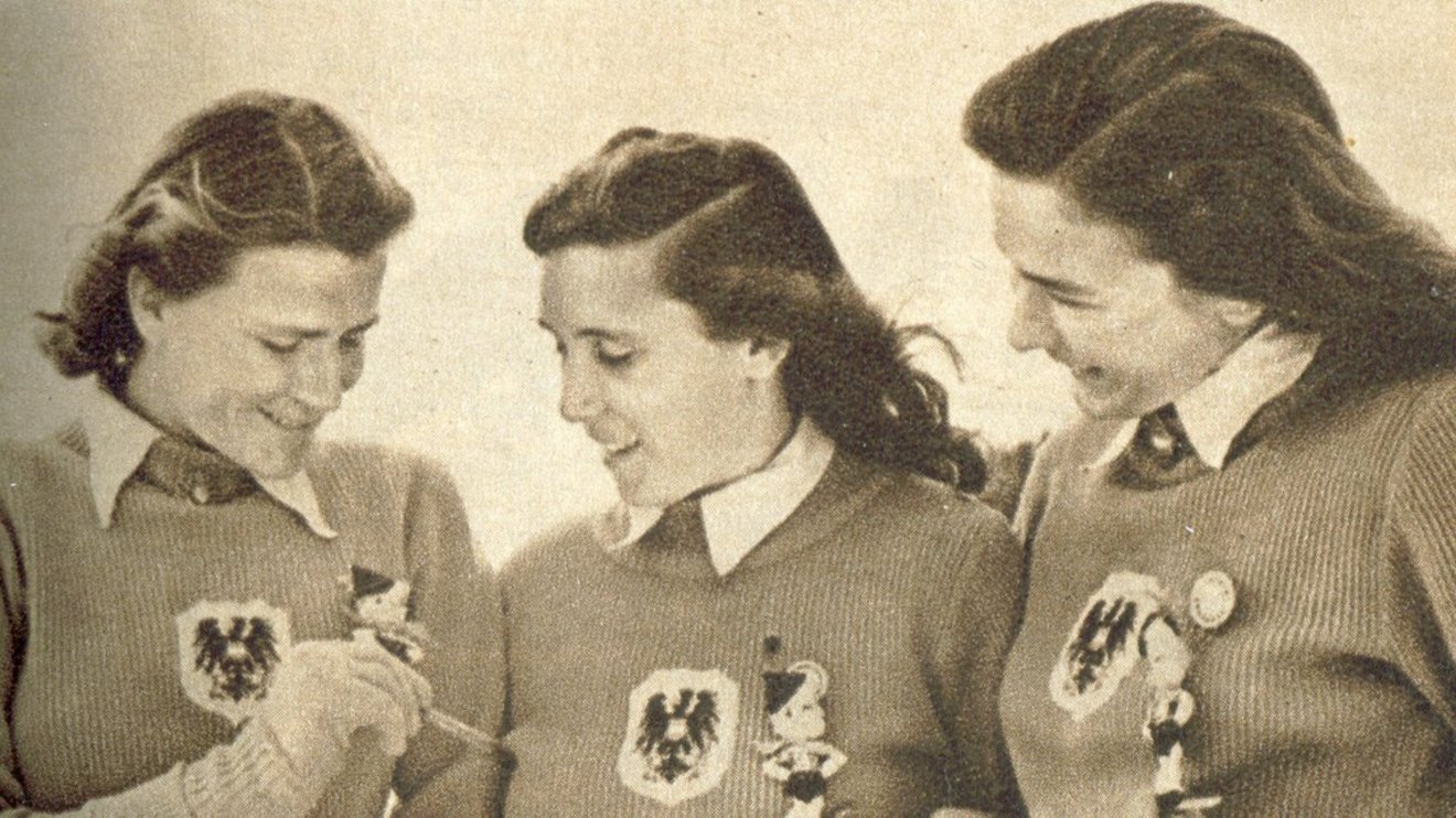Bildunterschrift: Athletinnen des österreichischen Teams bei den Olympischen Winterspielen 1948 in St. Moritz.