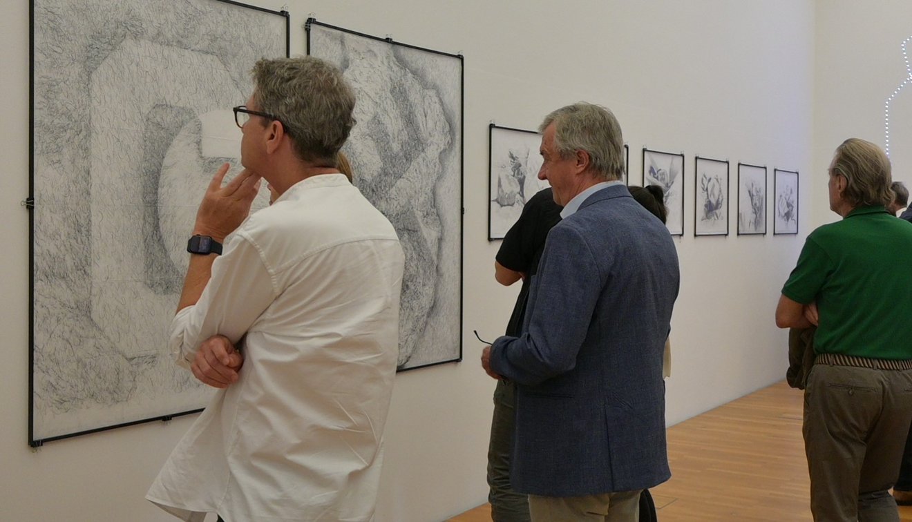 Diese außergewöhnliche Ausstellung des renommierten Künstlers Prof. Lothar Ämilian Heinzle lockte im Rahmen des diesjährigen „Bludenz 2024“-Programms, Kunstinteressierte aus der ganzen Region und darüber hinaus in den Kunstraum Remise, der sich in einen Ort der Reflexion über Zeit, Natur und Vergänglichkeit verwandelte. Heinzles Kunstinstallation „WINDHAUCH“ erweist sich als ein monumentales Werk, das die Grenzen zwischen Wildnis und Kunst auf poetische Weise verschwimmen lässt. Der Bludenzer Künstler schafft mit seiner Einzigartigkeit eine tiefe Auseinandersetzung mit der zyklischen Schöpfung der Geschichte und der menschlichen Erfahrung. In seiner Eröffnungsrede erklärte Heinzle: „Es gibt nichts Neues unter der Sonne“, und doch gelingt es ihm, aus diesem uralten Gedanken eine neue, tiefgründige Interpretation zu erschaffen. Im Mittelpunkt von „WINDHAUCH“ steht ein 40 Tonnen schwerer Megalith, der im nahegelegenen Rungeliner Wald verankert ist und eine neue Identität angenommen hat. Die Ausstellung selbst, die noch bis zum 8. September geöffnet sein wird, bringt den Monolithen auf erstaunliche Art und Weise in diesen beliebten Ausstellungsraum. Durch detailreiche Zeichnungen, Silhouetten und eine immersive Projektion wird der Stein lebendig und lässt die Besucher*innen die Essenz des Werkes spüren. Kurator Lucas Gehrmann führte die Anwesenden in die tiefen Schichten der künstlerischen Idee ein und eröffnete damit den Diskurs über die Beziehung zwischen Mensch, Kunst und unserem natürlichem Lebensraum.