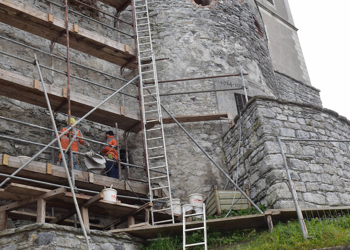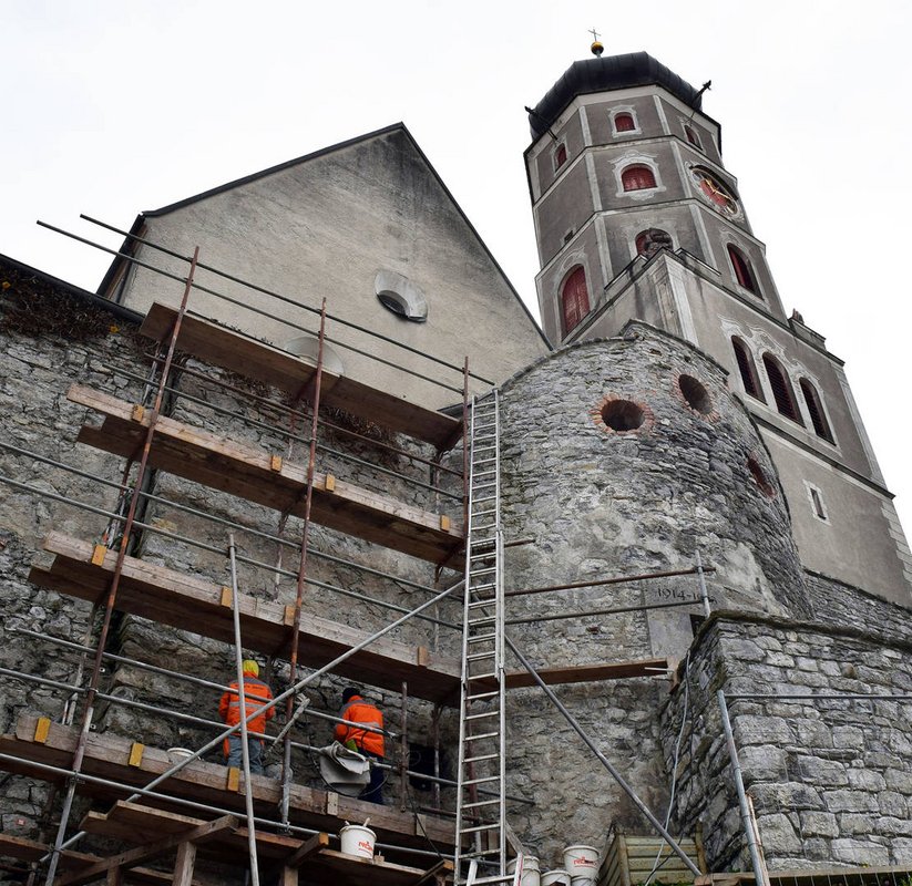 Nach den ersten drei Sanierungsetappen in den Jahren 2017, 2018 und 2019 beim Bludenzer Kriegerdenkmal und der alten Kirchen- bzw. Stadtmauer begann im August die vierte Etappe. Diese ist derzeit in den finalen Zügen. Unter den wachsamen Augen des Bundesdenkmalamtes wurden bei diesem Sanierungsabschnitt die Fugen von Experten mit einem Spezialmörtel saniert. Damit bleibt die Festigkeit des Mauerwerkes erhalten.