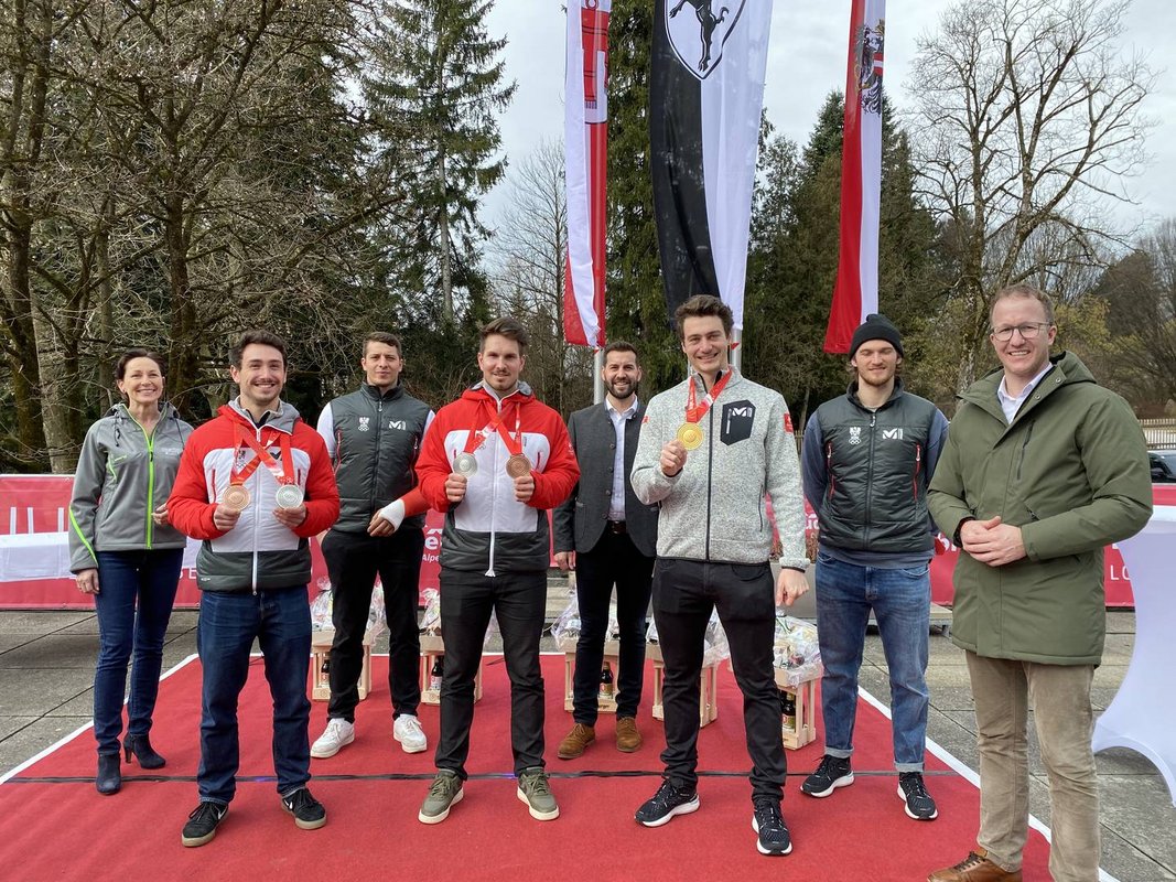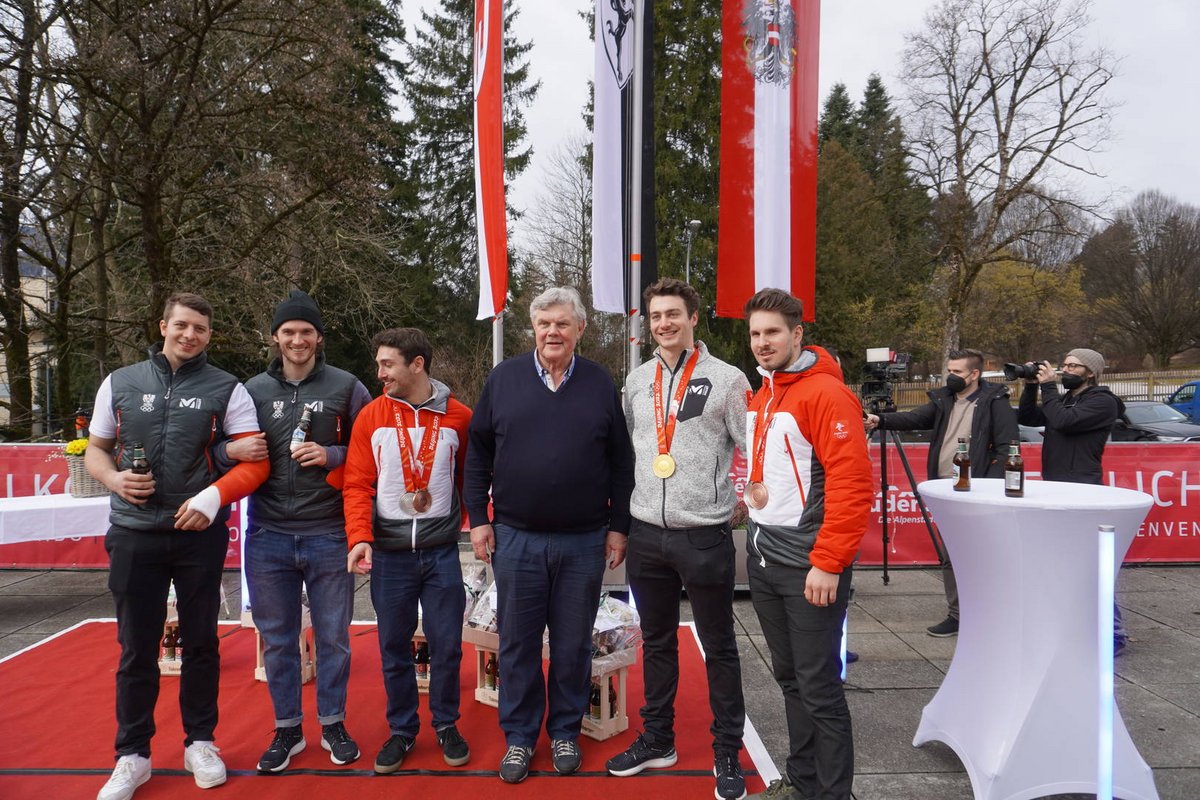 Die drei gewonnenen Medaillen (Gold für Alessandro Hämmerle, Silber und Bronze für Thomas Steu) gehören natürlich gebührend gefeiert. Aufgrund der derzeitigen Situation findet die große Medaillenfeier am 25. Mai 2022 statt.