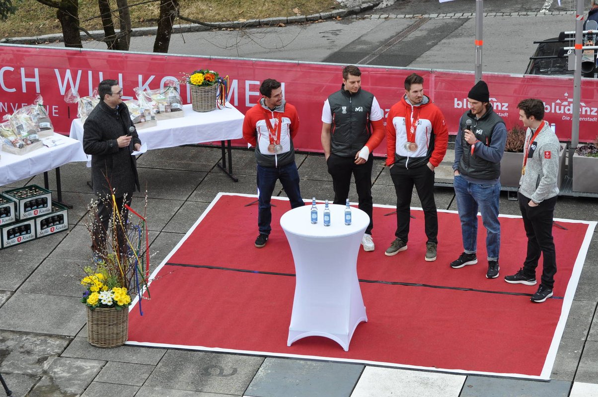 Vier Olympiateilnehmer aus Bludenz, das gab es noch nie! Anlass für die Stadt Bludenz zu Ehren von Alessandro Hämmerle, Thomas Steu, Julian Lüftner und Yannick Müller einen kleinen aber feinen Empfang beim Rathaus auszurichten. Das große Medaillenfest findet am 25. Mai 2022 statt.
