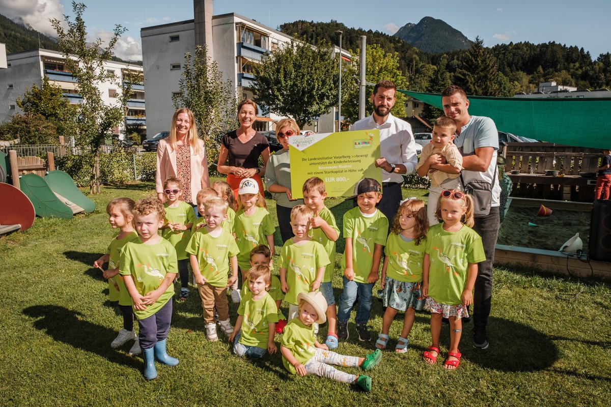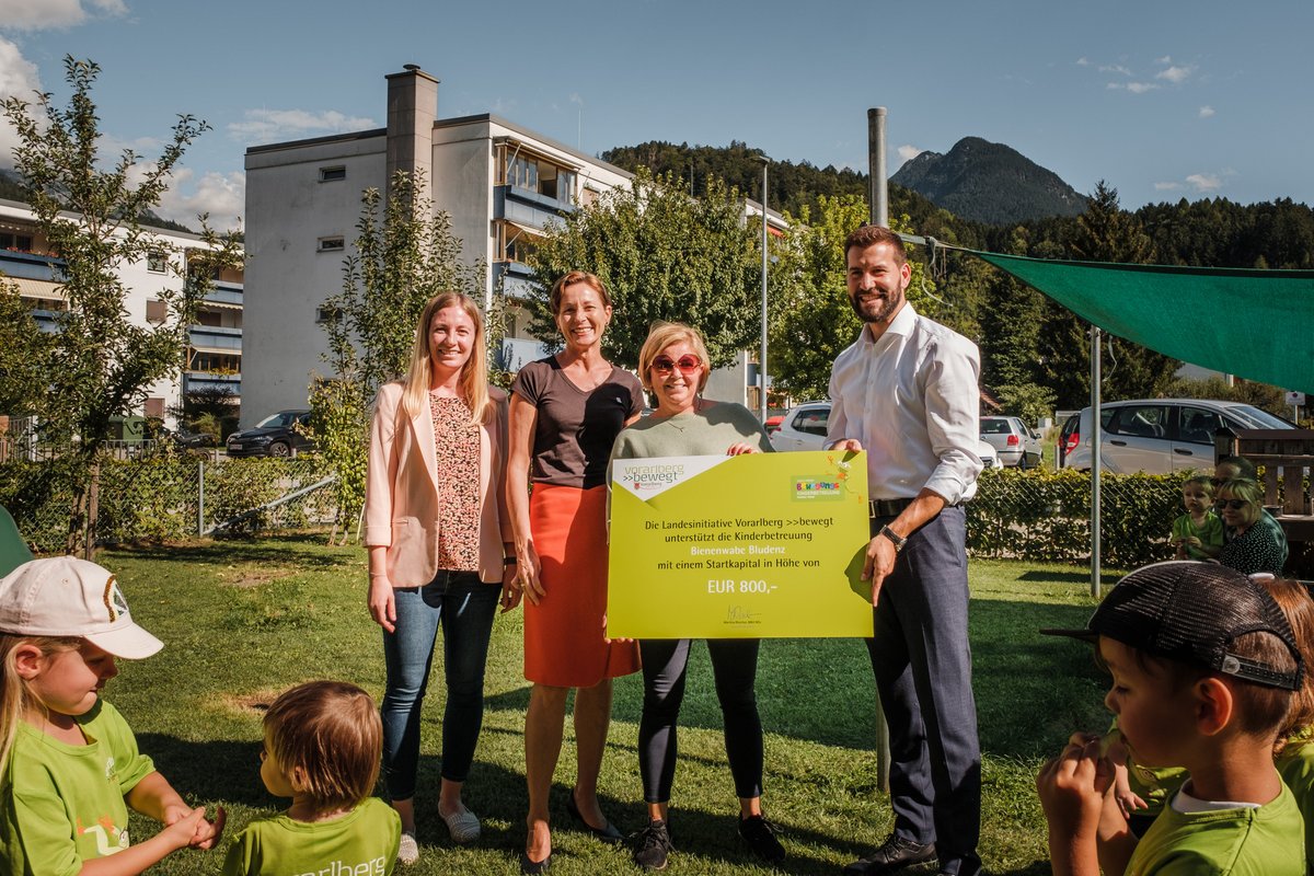 Die Leiterin der Kinderbetreuung Bienenwabe Bludenz, Nicole Dobler, erhielt vom Team der Initiative Vorarlberg >>bewegt einen Scheck über ein Startkapital in Höhe von 800 Euro. Mit diesem Startkapital kann in neue und fördernde Bewegungsmaterialien und Spiele investiert werde.