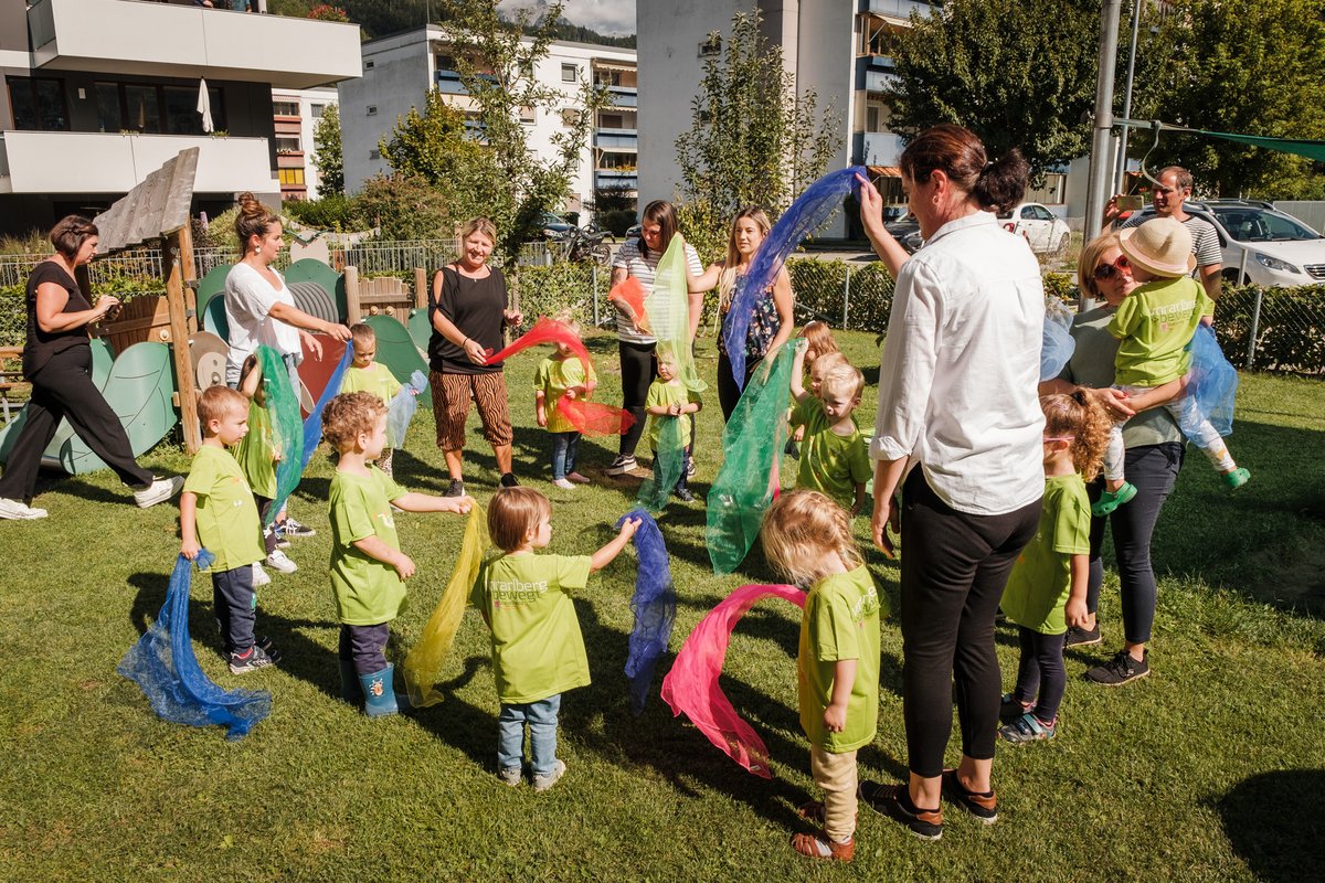 In der Kinderbetreuung Bienenwabe werden insgesamt 30 Kinder, in zwei Gruppen, von neun pädagogischen MitarbeiterInnen betreut. Drei Pädagog*innen haben bereits die eigens entwickelte Ausbildung zur >>Bewegungskinderbetreuung erfolgreich absolviert. Für das besondere Engagement im Sinne der Gesundheit und zum Wohle der Kinder spricht Landesrätin Rüscher dem gesamten Team ein großes Dankeschön aus.