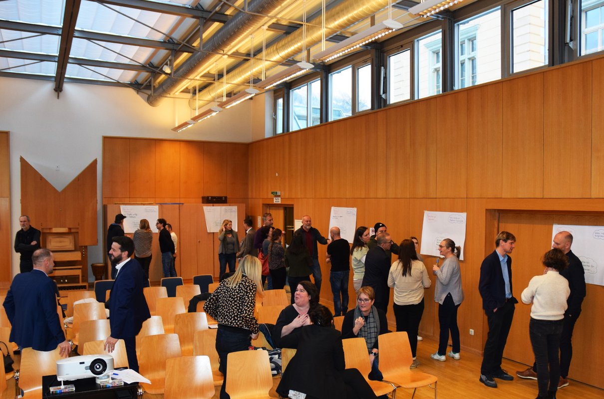 Im interaktiven Teil des Nachmittages wurden die Anwesenden zur aktiven Mitarbeit eingeladen. Dabei standen vor allem Überlegungen zu möglichen zukunftsfähigen Kooperationsmöglichkeiten zwischen Wirtschaft und Bildung im Mittelpunkt.