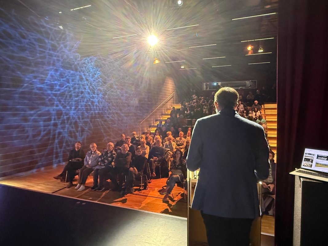 Im letzten Teil des Abends, der von Historiker Christof Thöni moderiert wurde, kam der Zeitzeuge Joop Caneel zu Wort. Der Niederländer, Jahrgang 1939, berichtete darüber, wie er mit viel Glück als Kind die deutsche Besatzungszeit überlebte. 1943 entging er nach drei Verhaftungen nur knapp der Deportation nach Polen, zuletzt weil seine Mutter, aufgefordert von einem mutigen Helfer, vor dem Einsteigen in den Zug eine Ohnmacht simulierte. Seine Eltern lebten fast zwei Jahre im Untergrund, während er als Kind zu einer Pflegefamilie auf dem Land gebracht wurde, wo er seine jüdische Herkunft verbergen musste. Auch die Eltern überlebten, und so kam es noch 1945 durch einen Onkel zum Wiedersehen.
