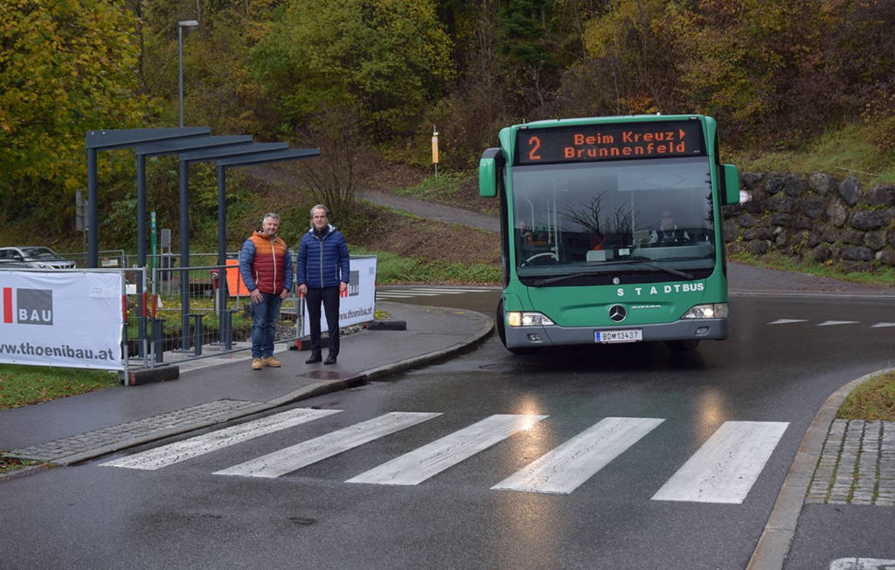 Bild: Verkehrsstadtrat Wolfgang Weiss und Mobilitätsbeauftragter Karl Thaler. Die beiden Haltestellen werden zukünftig eine hohe Haltestellenqualität bieten. (Foto: Stadt Bludenz)