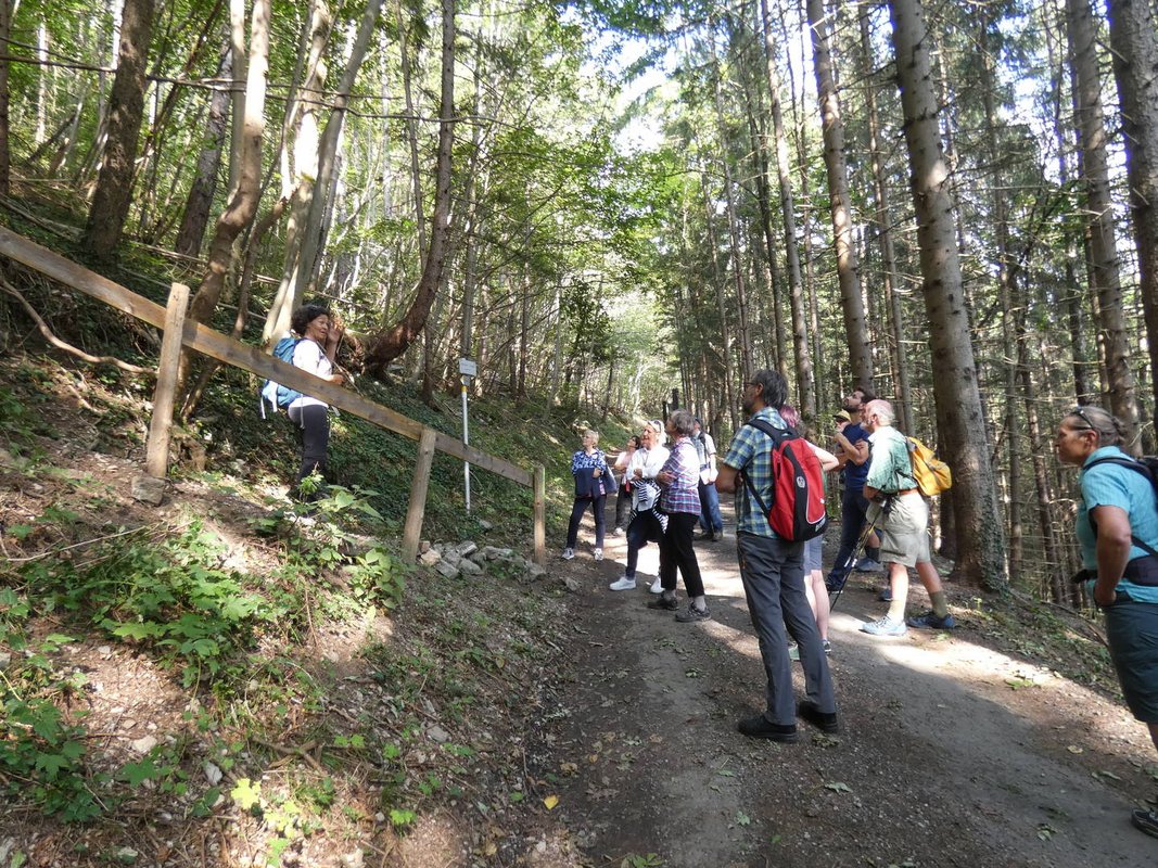 Die Referentin Monika Muther fesselte die naturbegeisterten Teilnehmenden mit spannenden Inhalten zu Waldgesellschaften und ökologischen Zusammenhängen im Gebiet bei traumhaftem Herbst-Wanderwetter.