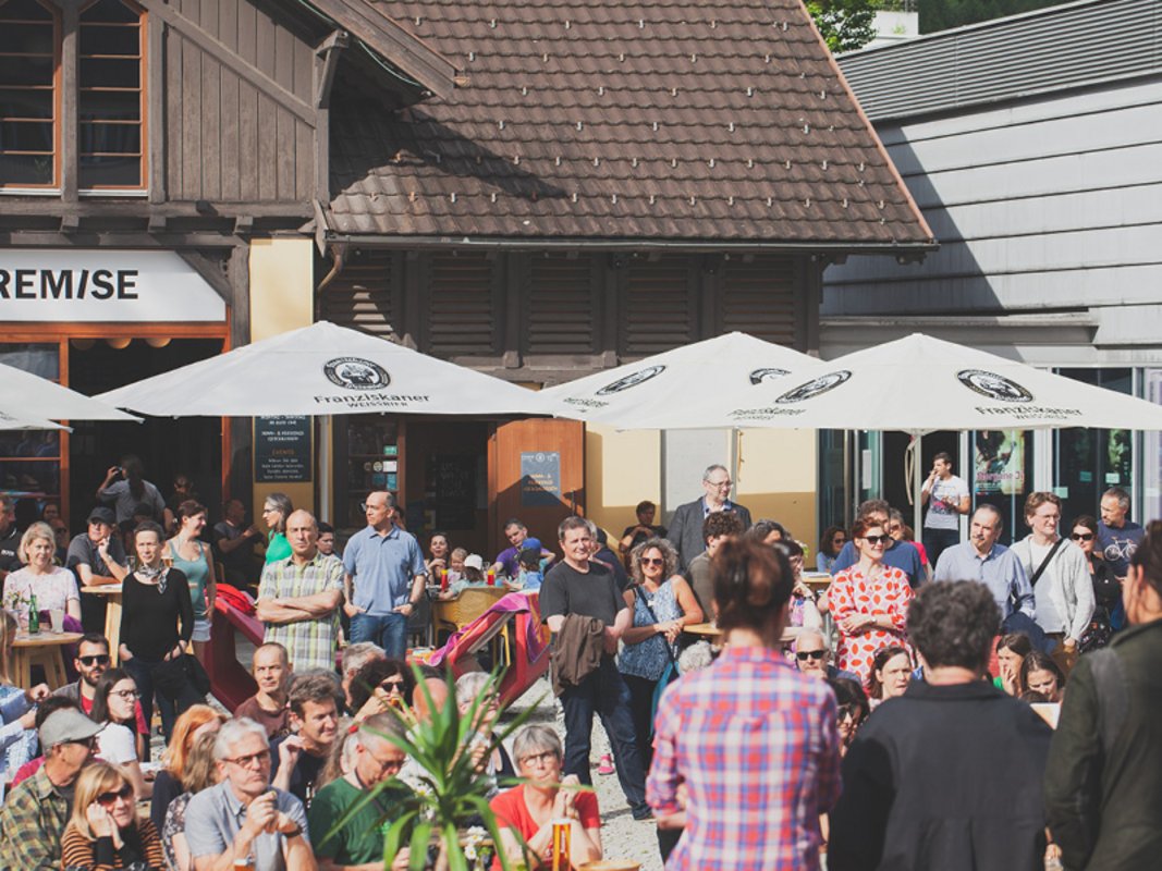 Musikalische Höhepunkte des Festival-Wochenendes waren ohne Zweifel der fulminante Auftritt von Cari Cari in der Remise sowie das open air-Konzert von Philipp Lingg & Martin Grabher am Samstagabend auf dem Fabrikgelände. Auch hier wurde verwendet, was da war: Die Laderampe im Innenhof wurde als Bühne umfunktioniert, alte Fässer dienten als Stehtische und gebrauchte Holzlatten fanden ein zweites Leben als Bartresen. Für gute Stimmung auf dem Re-Use Markt sorgten untertags das Duo „Das Kollektiv“, das Trio „Unter der Laterne“, Nele und das Duo Lia.