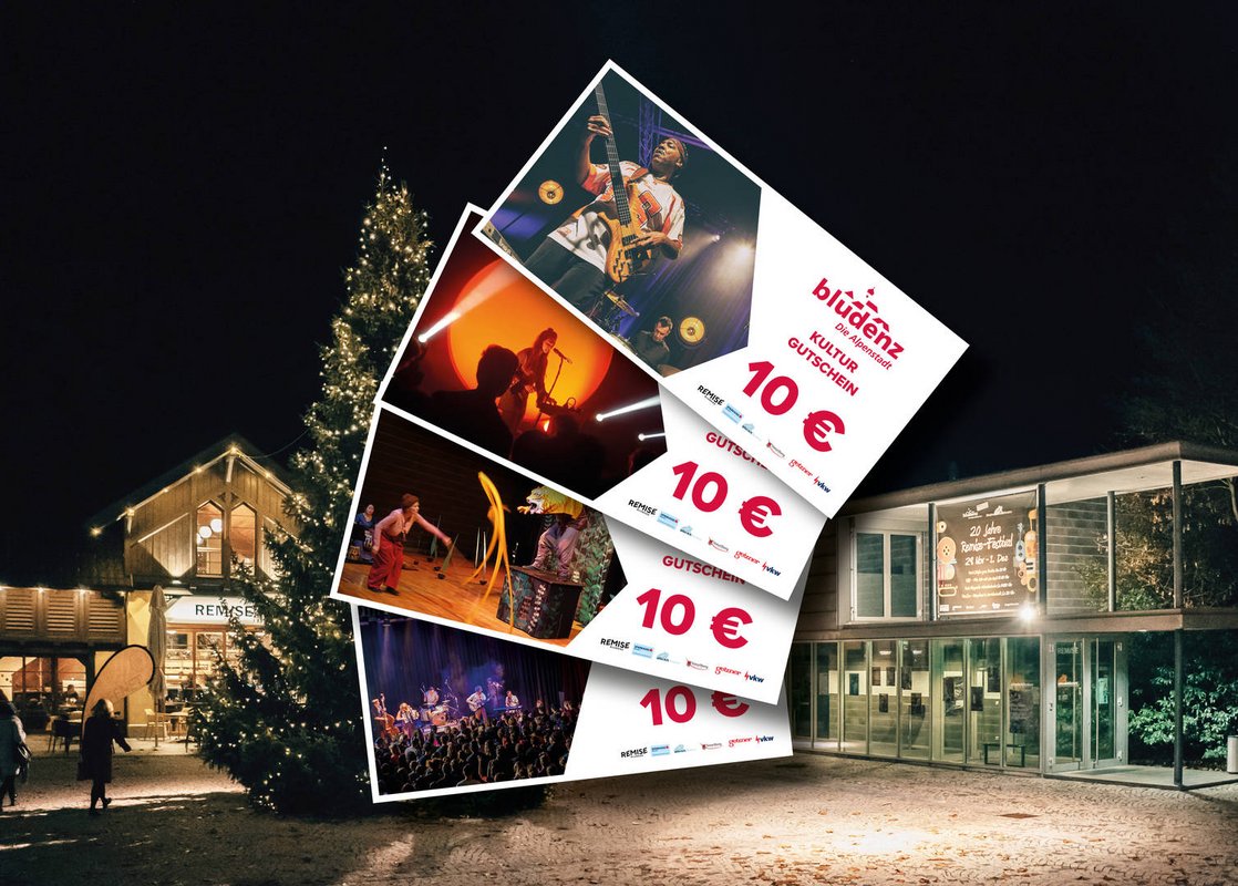 Der „Kultur-Gutschein“ im Wert von € 10,00 ist für alle kulturellen Veranstaltungen der Stadt Bludenz, der Bludenz Stadtmarketing GmbH sowie des Vereins allerArt gültig und kann, sobald wieder Veranstaltungen stattfinden, eingelöst werden. Der Verkauf und die Abwicklung des „Kultur-Gutscheins“ erfolgt ab Dezember über das Tourismusbüro Bludenz.