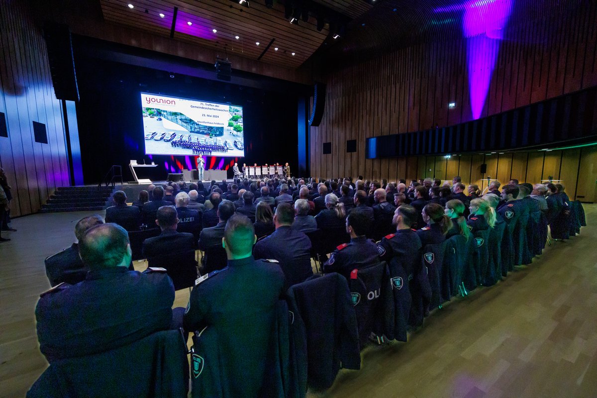 Beim gestrigen 71. Treffen der Gemeindesicherheitswachen im Montforthaus in Feldkirch war Bürgermeister Simon Tschann, Stadtamtsdirektor Stefan Morscher und eine Delegation der Stadtpolizei mit Kommandant Mario Leiter vor Ort.