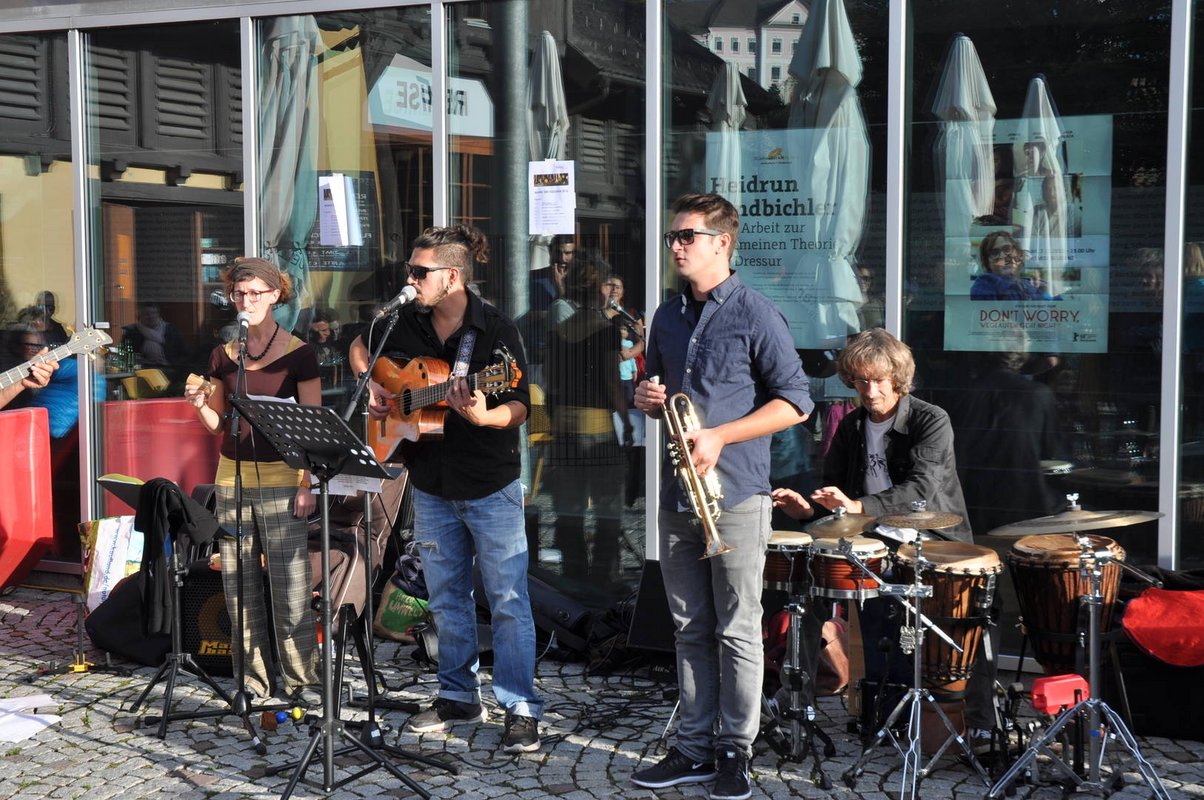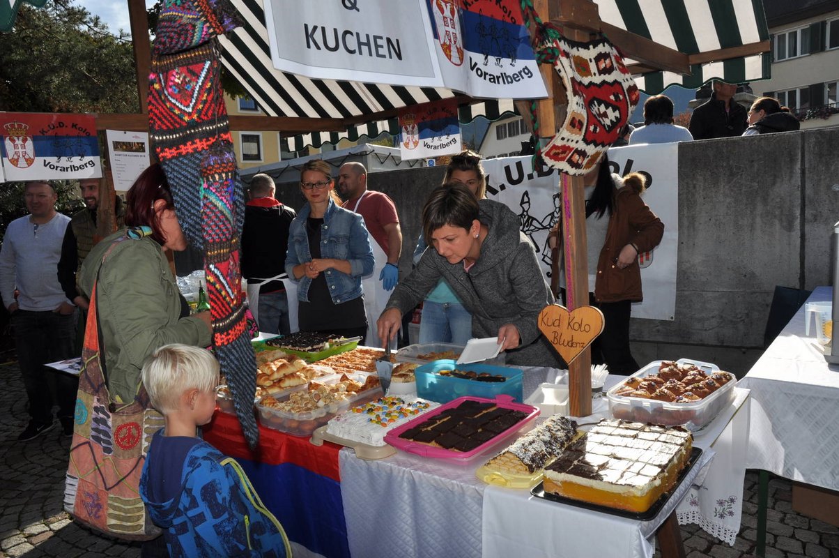 Bei kulinarischen Köstlichkeiten aus aller Welt, der bereits schon zum Fixpunkt avancierten Tanzvorführung des serbischen Kulturvereins K.U.D. Kolo und musikalischen Einlagen nutzten zahlreiche Interessierte die Gelegenheit, um beim Markt der Kulturen miteinander ins Gespräch zu kommen und sich gegenseitig besser kennenzulernen. Heuer erwarteten die BesucherInnen dabei u.a. Stände mit Spezialitäten aus Serbien, Kroatien, Frankreich, der Türkei und dem Iran. Auch abseits der Kulinarik gab es beim diesjährigen 10. Markt der Kulturen interssante Einblicke in andere Lebenswelten. Die Künstlerin Mariam Alhashoum zeigte ausgewählte Werke, die im Zuge ihrere Flucht nach Österreich entstanden sind. Spannende Einblicke lieferte auch der Internationale Frauentreff, der zusammen mit der Caritas Vorarlberg, seine Freiwilligenarbeit im Raum Bludenz vorstellte. Für die musikalische Unterhaltung am Marktplatz sorgte u.a. die internationale Formation HUMABILU, die mit Latin Grooves und Gypsy Jazz die passenden Klänge zum Fest der kulturellen Vielfalt lieferte.